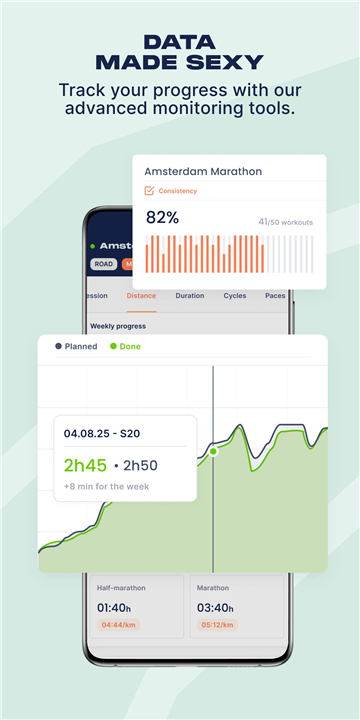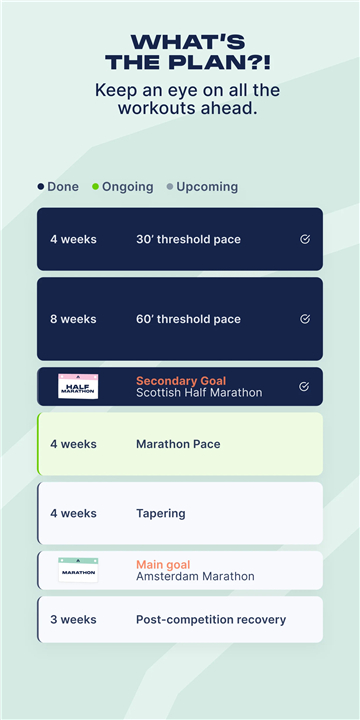• Choose programs starting from 12 weeks, adapted to your fitness level, lifestyle, and race goals.