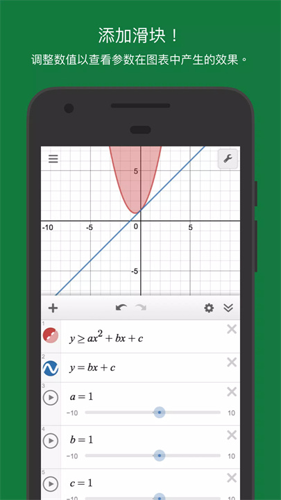 拖动滑块,数学图形瞬间发生变化!想要看动画效果?没问题,Desmos让你在动感十足的画面中感受函数的神奇魔力。