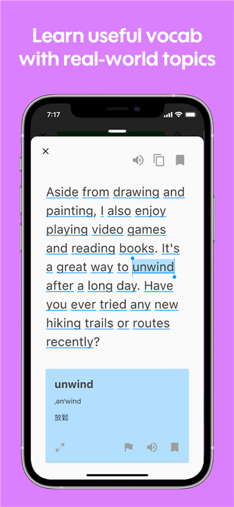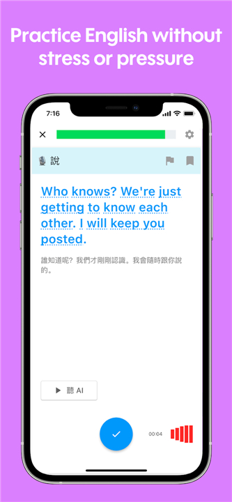 • Select from hundreds of topics, moving effortlessly between casual social banter and professional scenarios.
