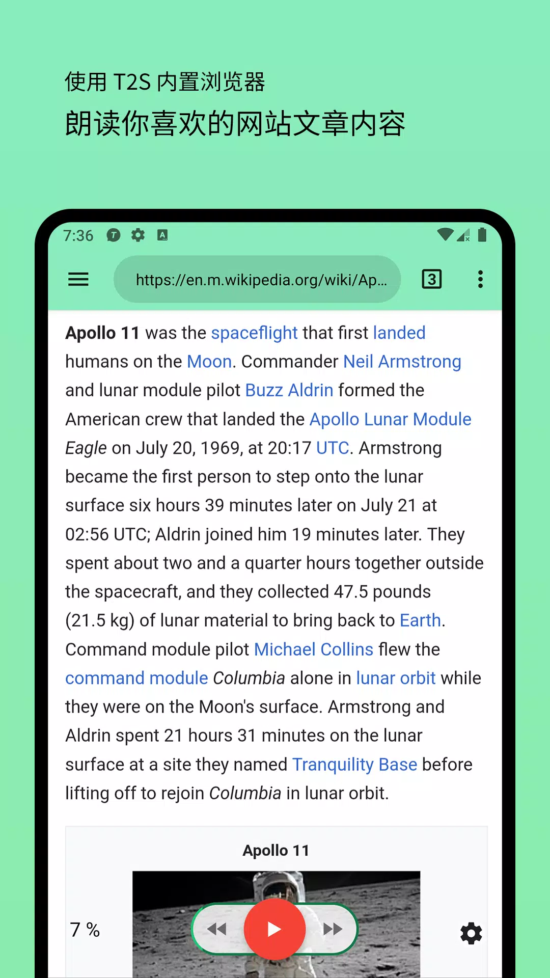内置浏览器朗读: