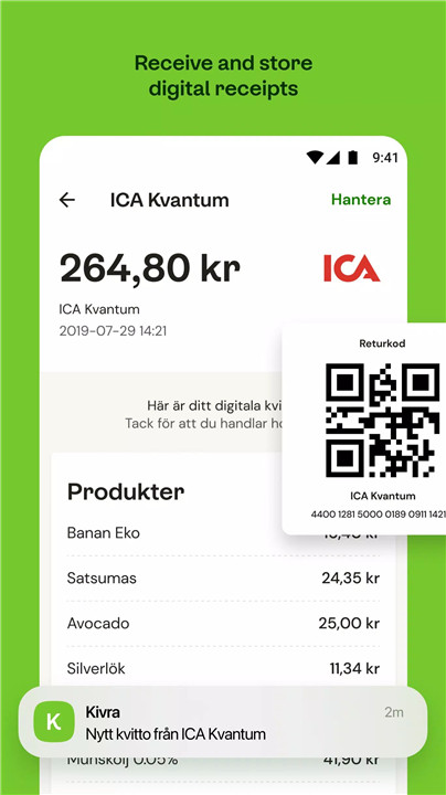 Kivra is connected to thousands of private companies, government institutions, and even major retailers. You can receive digital tax returns, vaccination certificates, annual statements, and other critical documents directly in your Kivra inbox. Plus, many popular stores send digital receipts, eliminating the need for paper receipts.