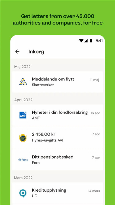Kivra is the ultimate digital organizer where you can gather and store all your important documents in one secure, easily accessible place. Gone are the days of keeping letters, receipts, invoices, and other essential papers in piles or binders. With Kivra, you can store everything from insurance letters to vaccination certificates, and access them at any time, from anywhere.