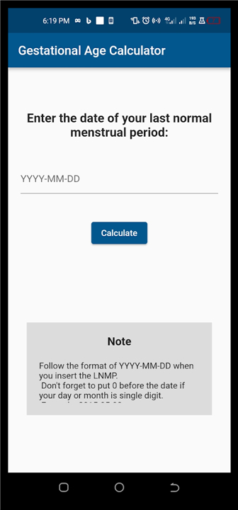 • The app calculates gestational age using the last menstrual period (LMP).