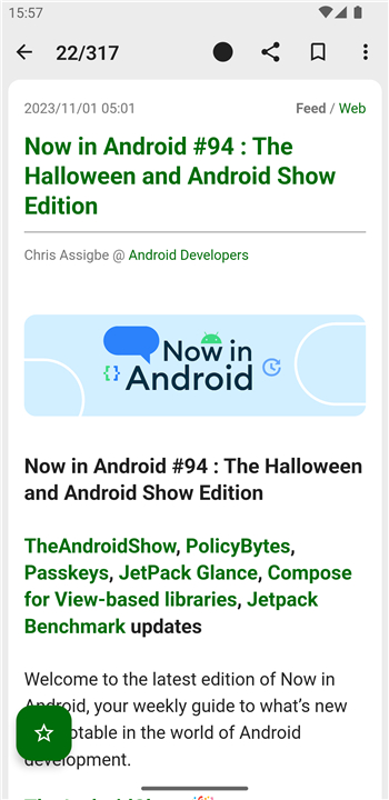 FeedMe is a simple and full featured offline RSS reader. Download the latest version of FeedMe (RSS Reader | Podcast) to enjoy new features and updates immediately!