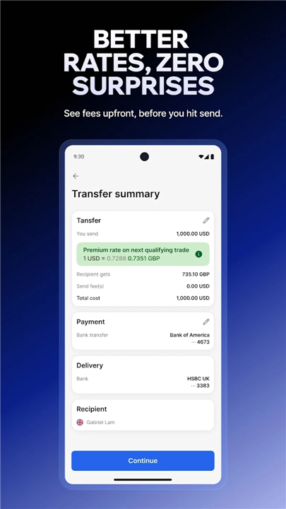 • Benefit from competitive exchange rates and lower fees that consistently outperform many major banks.