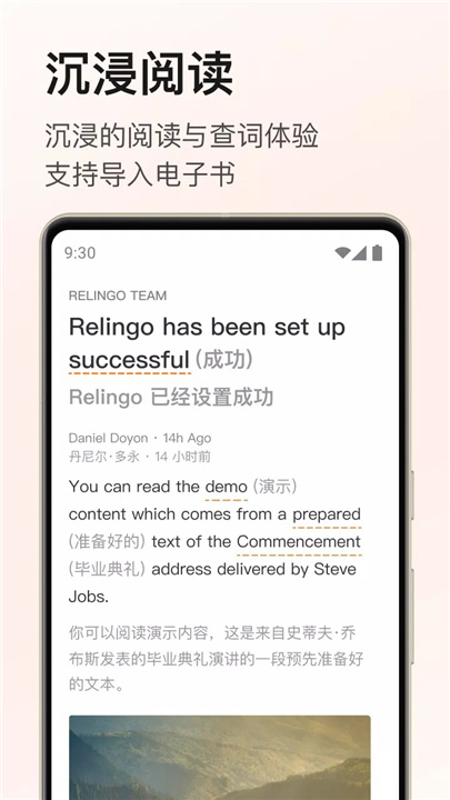 Relingo能够让你在享受浏览你钟爱的内容的同时,轻而易举地掌握单词并迅速查阅翻译。