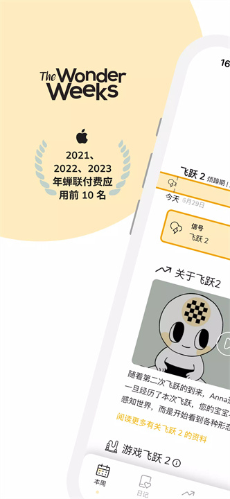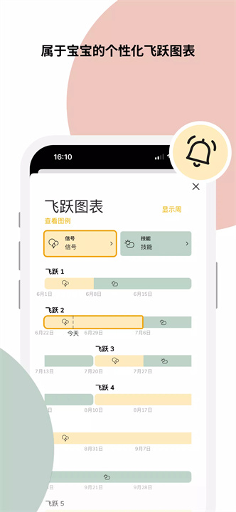 飞跃提醒:在宝宝即将进入新的飞跃期前,应用会及时提醒您,让您做好应对宝宝情绪和行为变化的准备。