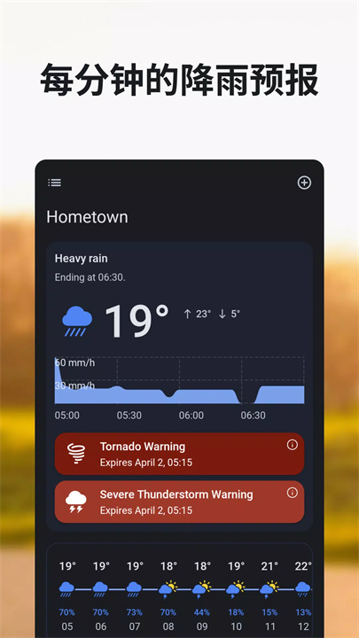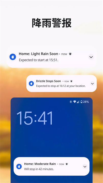 Rain Viewer 还提供详细的天气预报,用户可以获取每小时和每日的天气更新。其分钟级降水预报功能能够帮助你精准把握何时会下雨,何时会放晴,使得活动安排更加顺畅。而且,应用的雨雪警报功能会在降水来临前及时推送通知,确保你能够提前准备。
