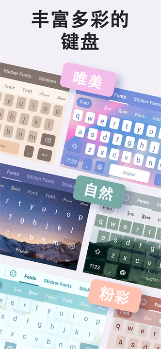 拒绝普通的标准键盘!Fonts Art 提供多种绚丽的键盘主题,满足你不同的审美需求。选择一个最符合你风格的主题,让打字变得更加有趣。