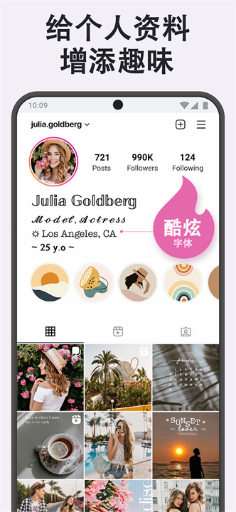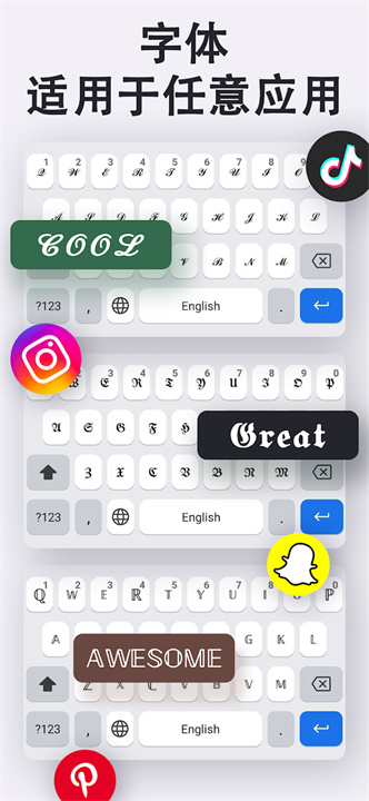 爱字体 (Fonts Art)是一款多功能的手机字体美化应用,提供超过300种独特字体,它是一个字体美化工具,还整合了文字编辑、符号键盘和自定义图标功能,支持Instagram、Snapchat、TikTok等社交媒体。用户可以轻松创建吸引眼球的个人简介和帖子,利用丰富的符号、主题标签、表情符号和GIF,使信息更加生动。此外,提供多种键盘主题,满足不同用户的审美需求,轻松实现创意打字体验。