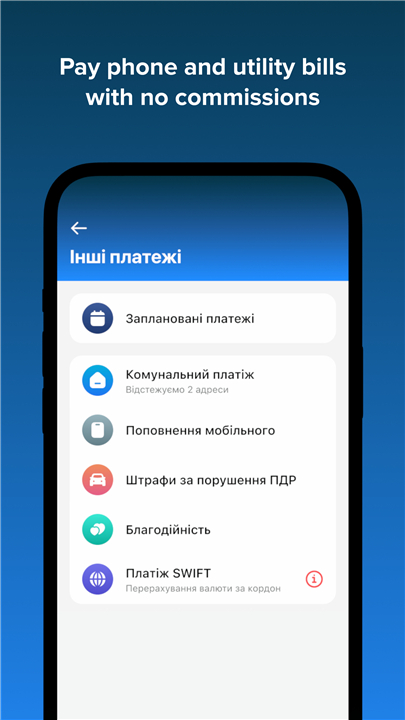 • No-Fee Bill Payments – Utilities, fines, phone charges at zero commission