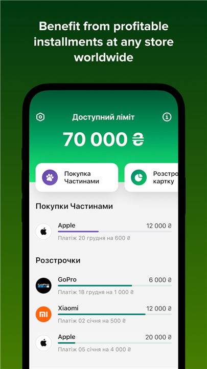 Додано можливість сплатити будь-яку частину кредиту в будь-який момент. Це має спростити погашення Розстрочки на картку та Покупки Частинами