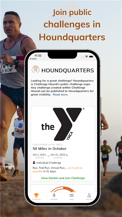 - Challenge Hound challenges focus on recorded activities such as runs, swims, hikes, and rides, rather than daily movement or step counts. Participants are required to log their activities manually or sync them with compatible tracking apps.