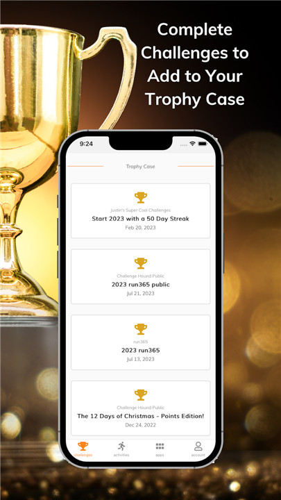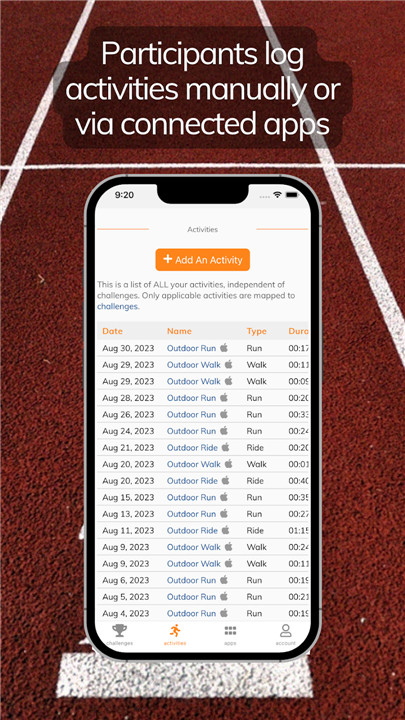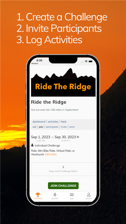 - Monitor distance, duration, elevation, and the number of activities for each challenge.