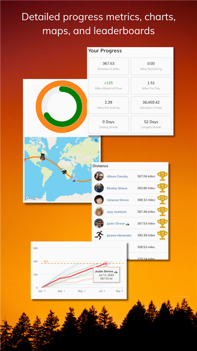 A: You are able to see detailed progress metrics, charts, map, and leaderboards.
