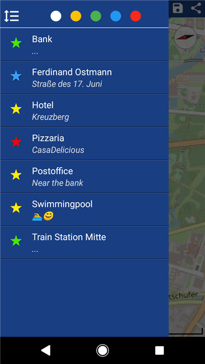 Streamline your navigation experience by creating a personalized list of your favorite locations. Assign unique colors to each contact address for easy identification. Access driving or walking directions with a single tap.