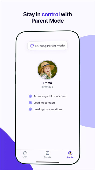 KINDER Kids Messenger allows parents to create accounts for their children and control who they communicate with. Children can only talk to parent-approved contacts, keeping their online experience safe and secure.