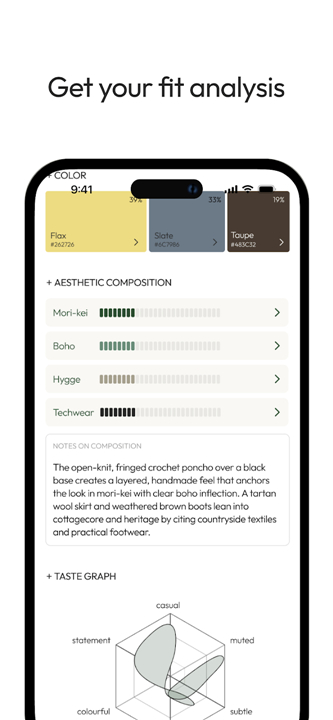 • By acting as a sophisticated digital companion, the application allows users to document their aesthetic journey while gaining technical insights into their specific wardrobe choices.