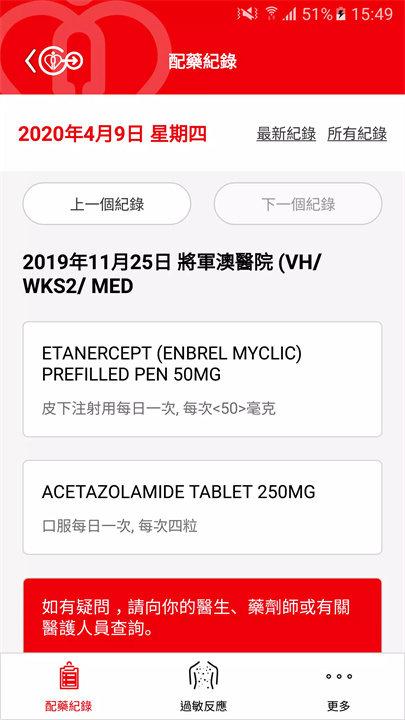 病人还可以轻松查找自己的配药记录,了解药物的详细信息,同时查看过敏史,确保药物使用的安全性。