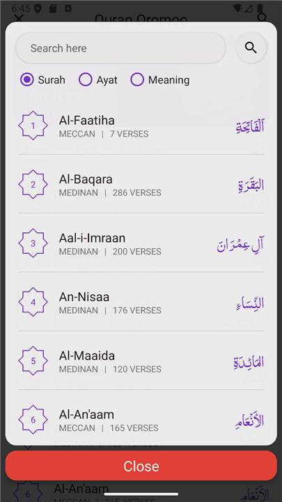 • Navigate all 114 Surahs and 30 Juz with ease using an intuitive, user-friendly interface.
