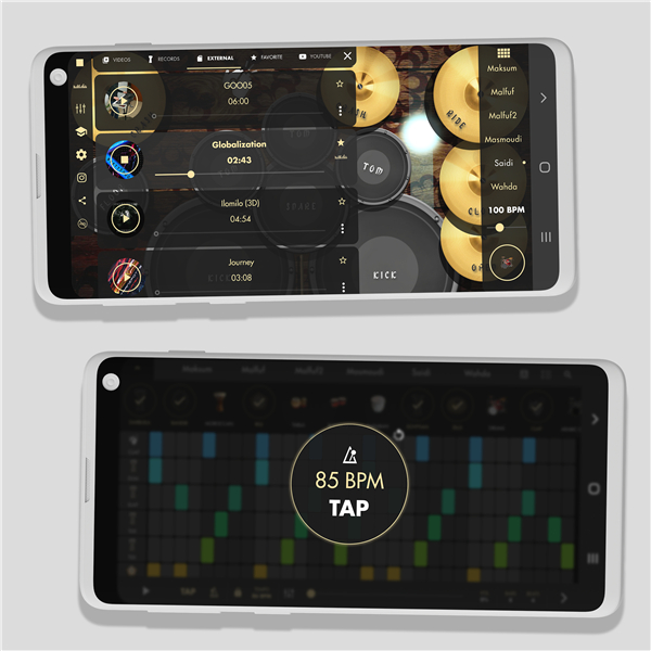 A: The developers recorded each drum in a professional studio using a variety of playing techniques, microphone placements, and acoustic environments. Those samples were then programmed with multi‑touch response and velocity‑sensitive dynamics so that every strike, roll, or slap reacts just like the real instrument would under your fingertips.