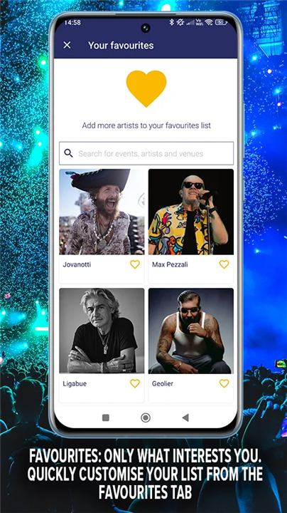 A: After you’ve indicated your favourite artists, genres, and venues, the app’s recommendation engine adapts to your tastes, suggesting new events that align with your interests. Over time, as you attend shows and interact with upcoming listings, TicketOne.it continually refines its suggestions, ensuring the content you see becomes increasingly relevant. You can also maintain a list of “Favourites” so you’ll have quick access to the artists and events you care about most.