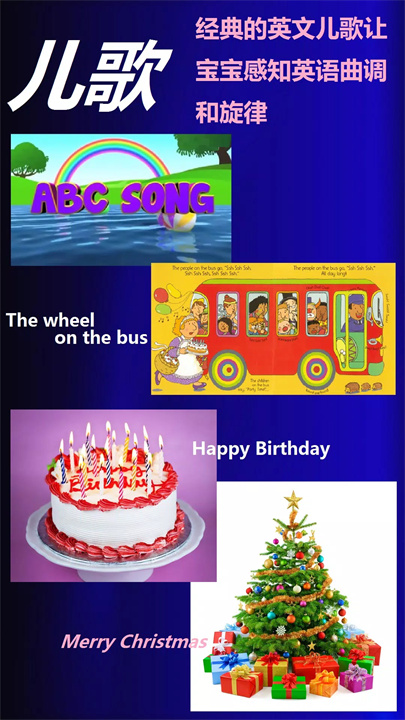 所有播放内容均采用标准美式发音,涵盖认知、儿歌、动画、寓言故事及场景互动,让学习变得有趣而生动。