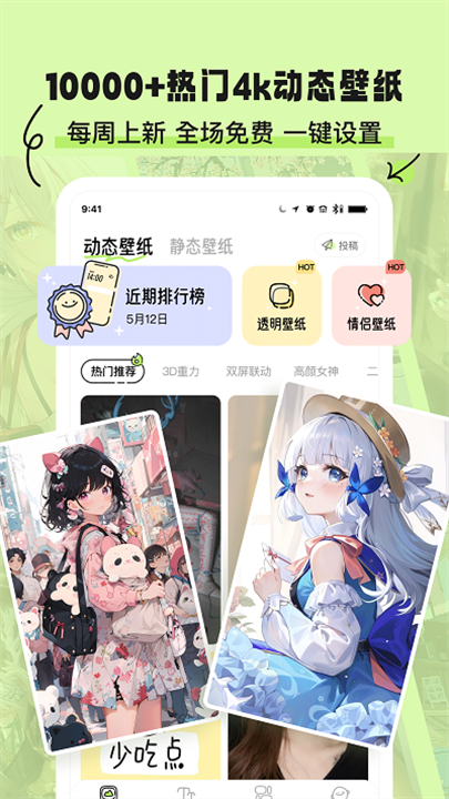 - 提供海量4K高清壁纸,涵盖风景、动漫、明星、潮流、抽象等多个主题。