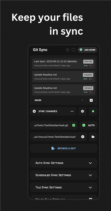 A: In your repository settings you can enable automatic sync on app open or close, set a fixed interval for scheduled syncs, or bind a quick-access tile in your Android tray. Once activated, GitSync will quietly pull or push changes according to your preferences without further prompts.