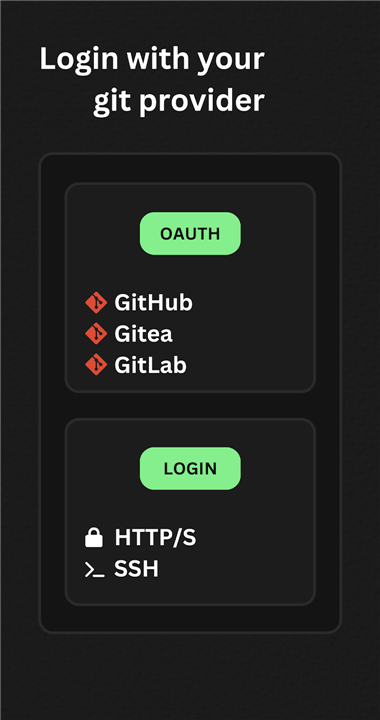 A: GitSync offers HTTP/S credentials, SSH key pairs, OAuth for hosted services, and native GitHub, Gitea, or GitLab integrations. HTTP/S is simple for quick setups, SSH provides stronger security for advanced users, OAuth prevents you from storing passwords on your device, and specialized integrations streamline token management with those platforms.