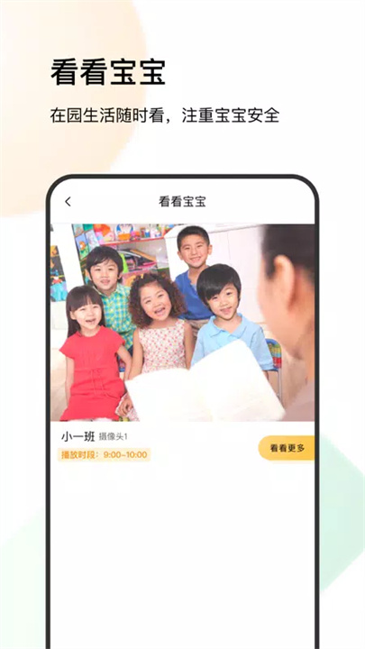 家长可以通过实时视频查看宝宝在园的情况,随时掌握孩子的状态,带来更多安心感。
