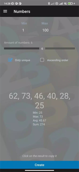 可以生成1至10个随机数字,用户可以选择指定范围内的数字并确保每个数字唯一。生成的数字可以选择按升序排列,同时提供最小值、最大值、平均值及数字总和等统计信息,帮助您更好地分析结果。