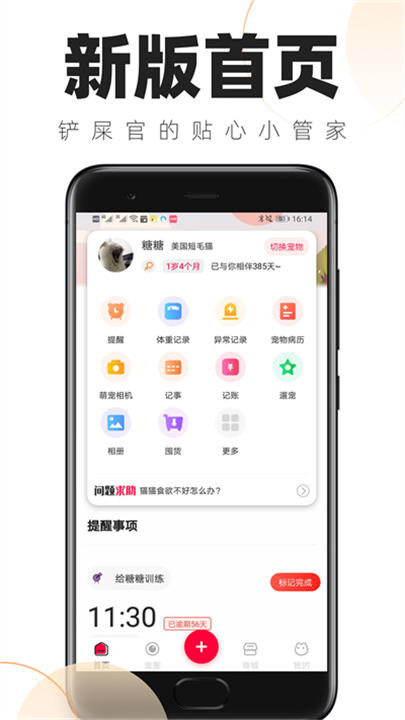铲屎官的日常——每个铲屎官必备的宠物管理小助手!从食物、体重到疫苗、驱虫,一键记录,不漏任何重要事项。拍下萌宠的可爱瞬间,分享给朋友们,看大家一起“萌”到不行!还有提醒功能,不再错过每个喂食、遛宠的小细节。记账功能帮你管理宠物的每一笔开销,清清楚楚。