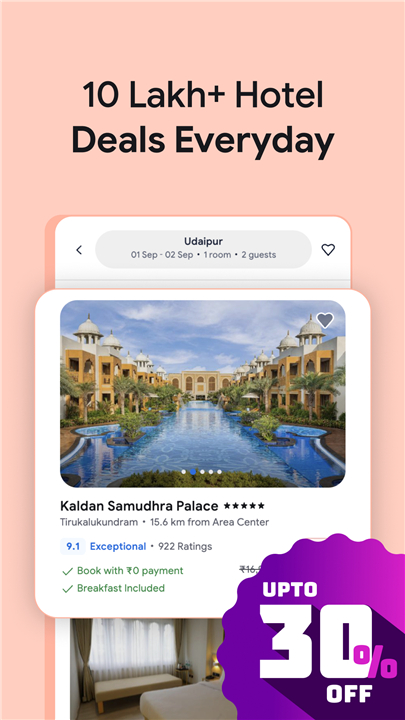 • Choose from budget stays to luxury hotel chains like Taj, Hyatt, Radisson, Leela, Marriott, Sterling, and OYO.