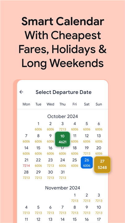 • Smart Holiday Calendar: Identify the best days to travel at the lowest fares.