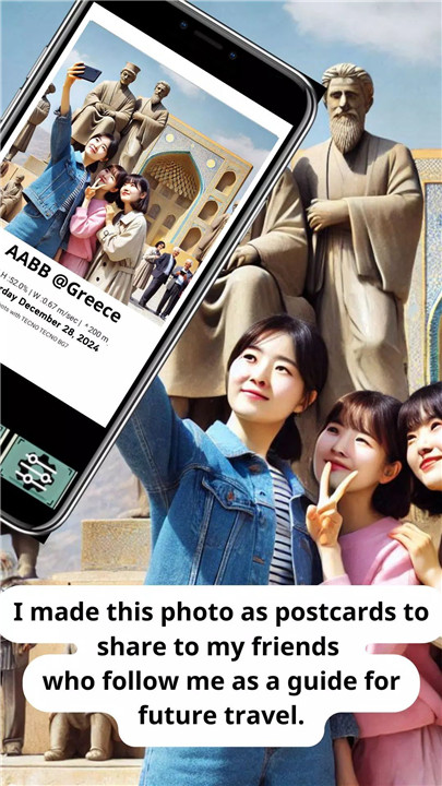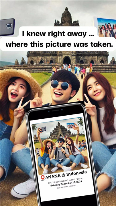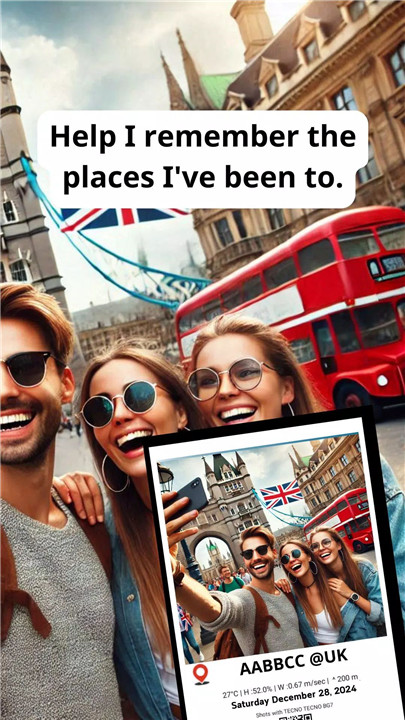 Share your travel experiences effortlessly with the built-in QR code feature. This QR code links directly to your location, allowing others to scan and see exactly where the photo was taken. It’s a perfect way to share your journey with friends or create a travel blog with detailed location markers.