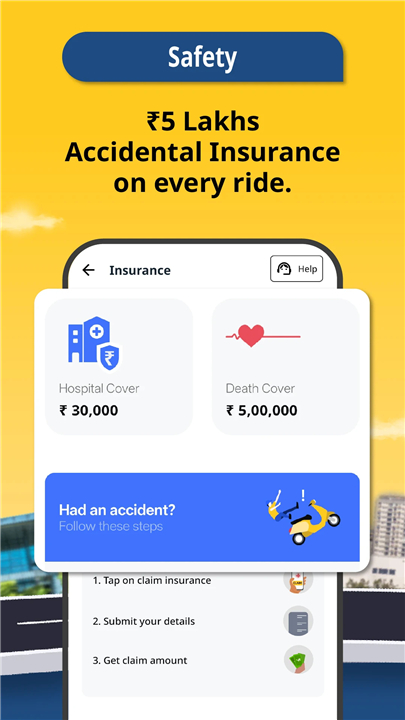• Safety Matters – Every ride is protected with up to ₹5 Lakh* insurance coverage.