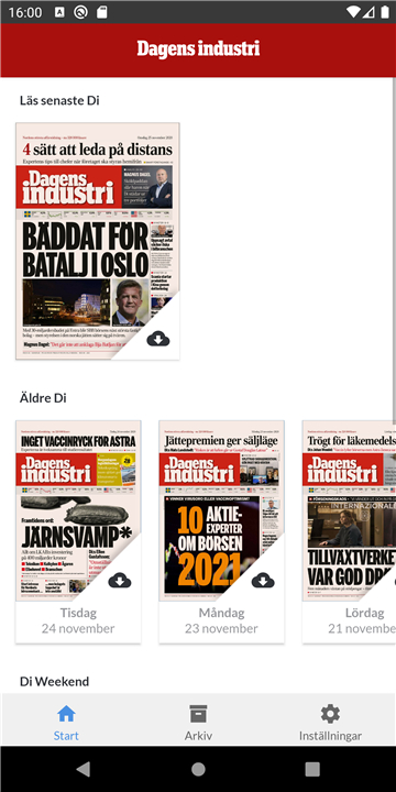 Read the latest first. Tomorrow's newspaper is published online every evening at 9 pm. Download the latest version of Di e-tidning - Dagens industri to enjoy new features and updates immediately!