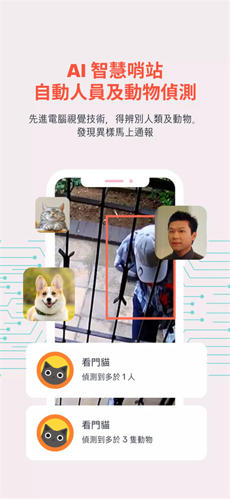 WatchCat是一款可以将旧手机转变为家庭监控摄像头的应用,具备实时直播、AI侦测、双向通话等功能,帮助你随时监控家中的安全。