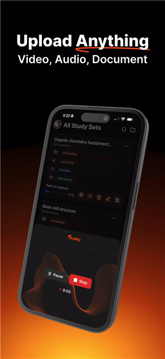 Studley AI allows students to transform almost any learning material into a structured Study Set. Content such as lecture slides, textbook chapters, PDF files, YouTube videos, or online articles can be uploaded directly into the platform.