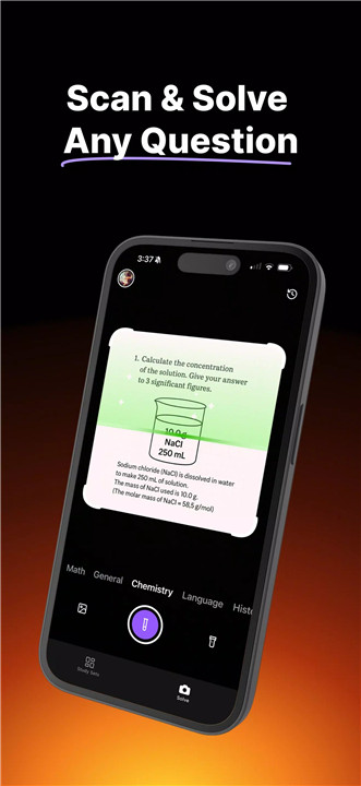 The Solve Tab acts as an instant homework assistant. Students can take a photo of a question or problem, and Studley AI provides a detailed step-by-step explanation rather than just a final answer.
