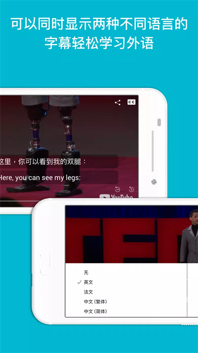 双语字幕:同时显示两种语言的字幕,如中文与英文,帮助用户理解整段句子的意思。