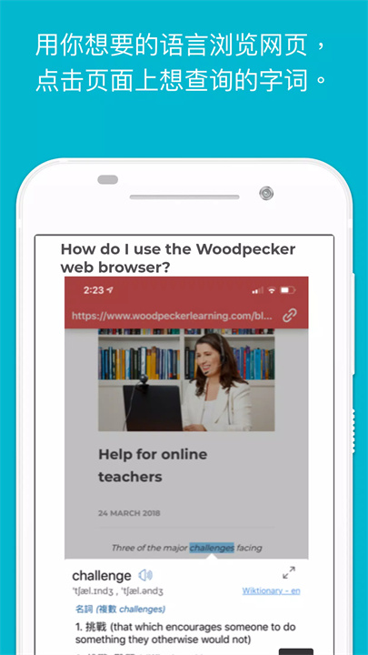 使用我们的超棒双语字典,查询不同单字,影片字幕中和网页上的生字。我们的字典功能是免费,可离线使用以及无广告播放! 下载最新版本的敲敲学英文6.30.0,立即享受新功能和更新!
