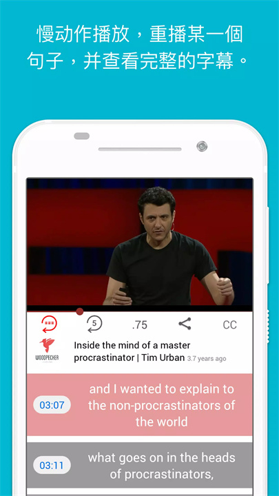 字幕翻译:观看影片时,字幕中单字可以点击查看翻译,理解更深刻。