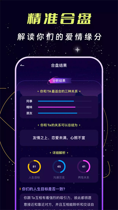 精准合盘:从性格、心灵到沟通,全面分析你和TA的关系,提供情感建议,让爱更简单。