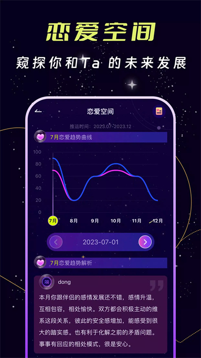 心动空间:预测你们未来的情感趋势,助你规避风险,提升幸福指数。