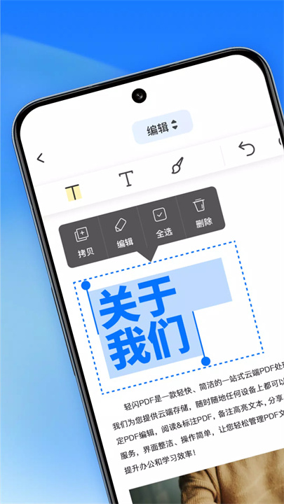 [轻闪PDF]是一款方便的文档处理工具,支持PDF文件的阅读、编辑和转换。你可以在手机、电脑和网页上同步文件,随时随地高效办公。通过OCR技术,轻松提取图片或扫描件中的文字,并支持多种文件格式互转。还可以团队协作编辑、分享文件,文件在云端自动保存,避免丢失。一键转换,轻松处理多种文件格式!