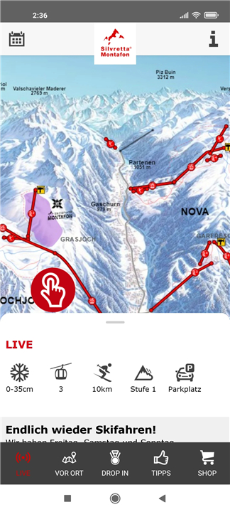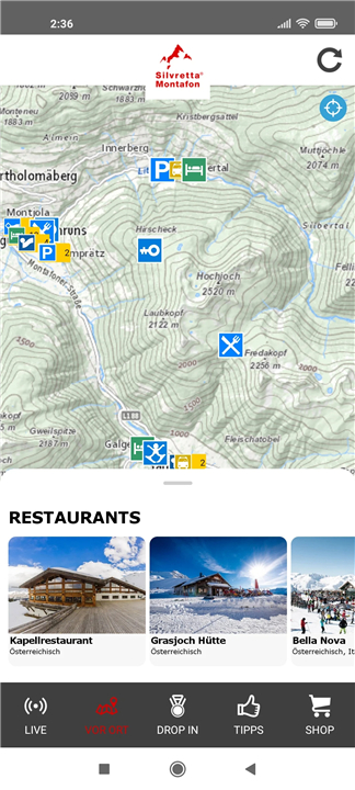 • Discover services like equipment testing at Intersport, lessons at the Ski or Freeride school, or simply the nearest cozy café—updated in real time