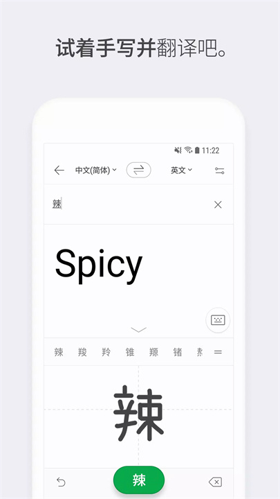 手写翻译:直接手写输入需要翻译的文字,Papago会立即提供翻译结果。