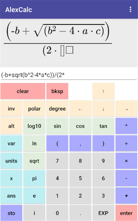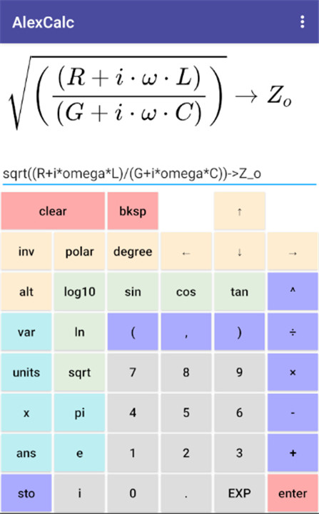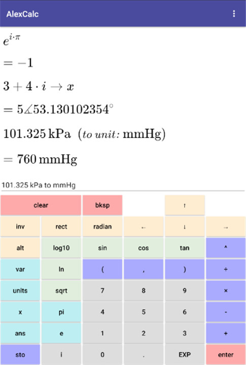 Scientific calculator with equation display, variables, units, complex numbers. Download the latest version of AlexCalc 1.0.6 to enjoy new features and updates immediately!